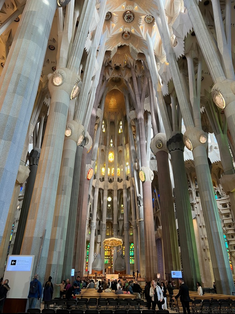 Pühapäeva hommikut alustasime varakult La Sagrada Familia külastamisega. Kuna pühapäeva hommikuti on seal teenistus, mis on kõigile külastajatele tasuta, siis otsustasime kiriku külastamiseks valida just selle aja. Veetsime seal umbes tunnikese ning saime osa tõeliselt huvitavast Hispaanlaste teenistuse hommikust ning hingematvalt ilusast kiriku arhidektuurist.